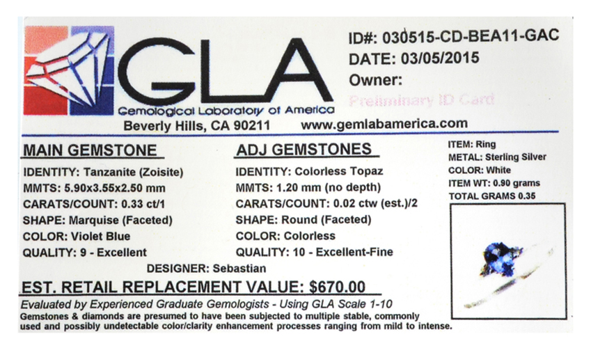0.33CT Tanzanite /Topaz And Sterling Silver Ring