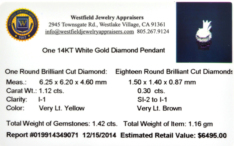 1.12CT Center 14KT. White Gold 1.42CTW Light Champagne Diamond Pendant