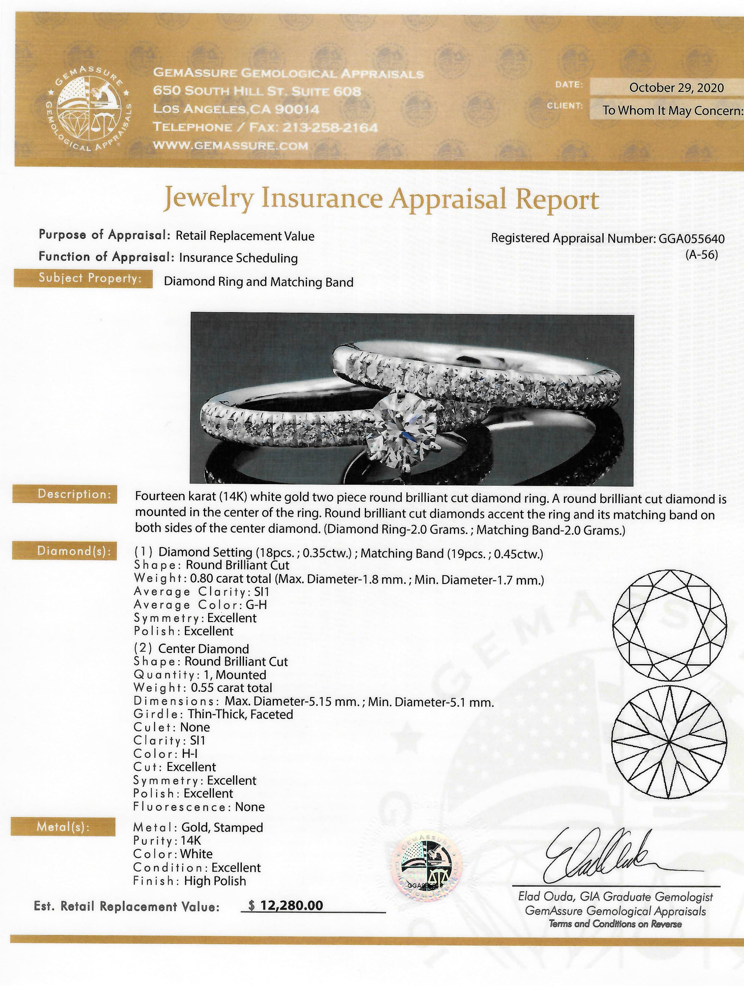 Brand New 14KT White Gold Diamond Engagement Ring Set with Matching Wedding Band! (VGN A-56)