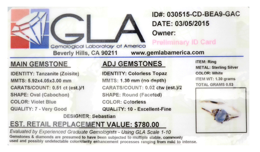 $69.000.51CT Tanzanite /Topaz And Sterling Silver Ring