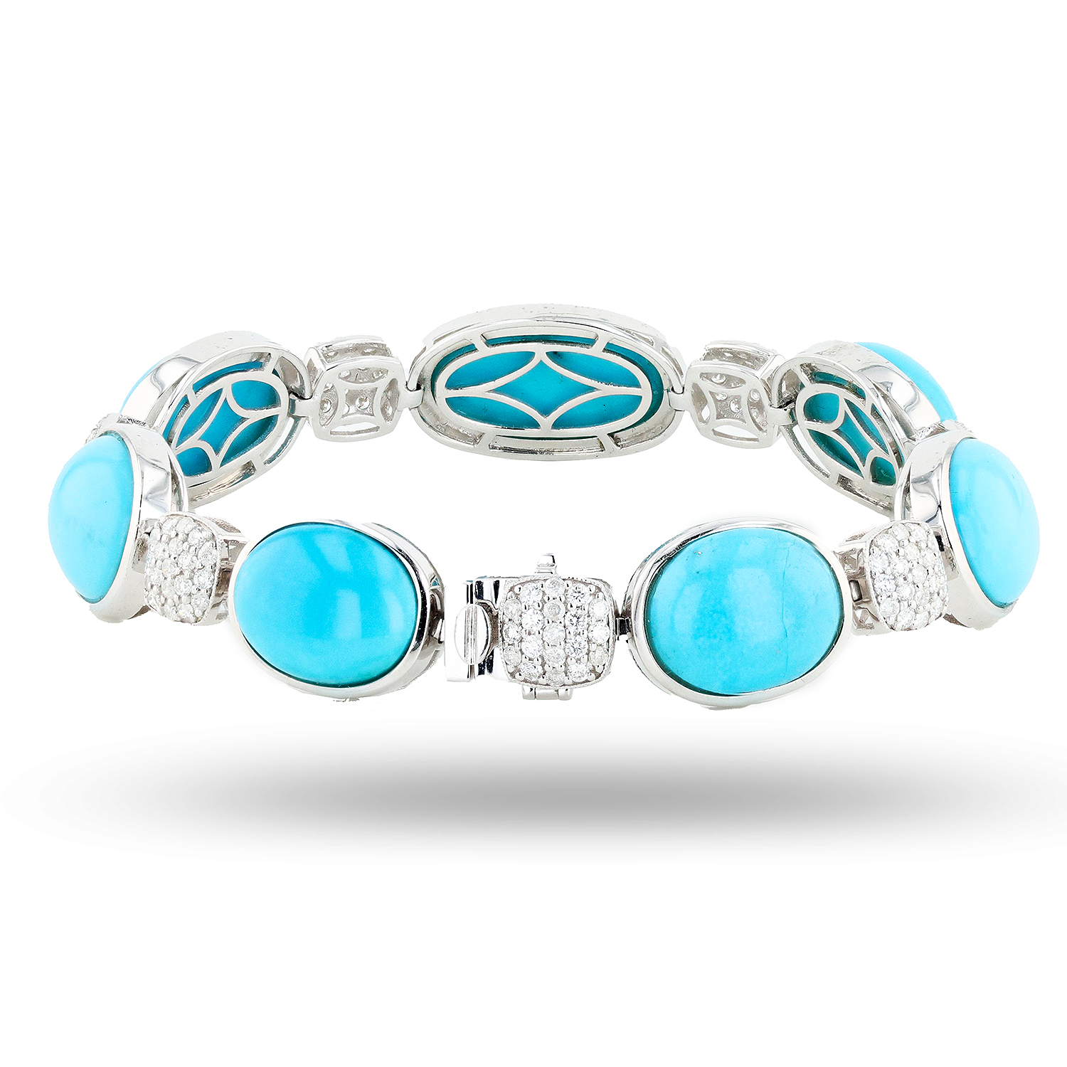 $3,989.0046.14ctw Turquoise and 1.86ctw Diamond 14K White Gold Bracelet (Vault_RR04)
