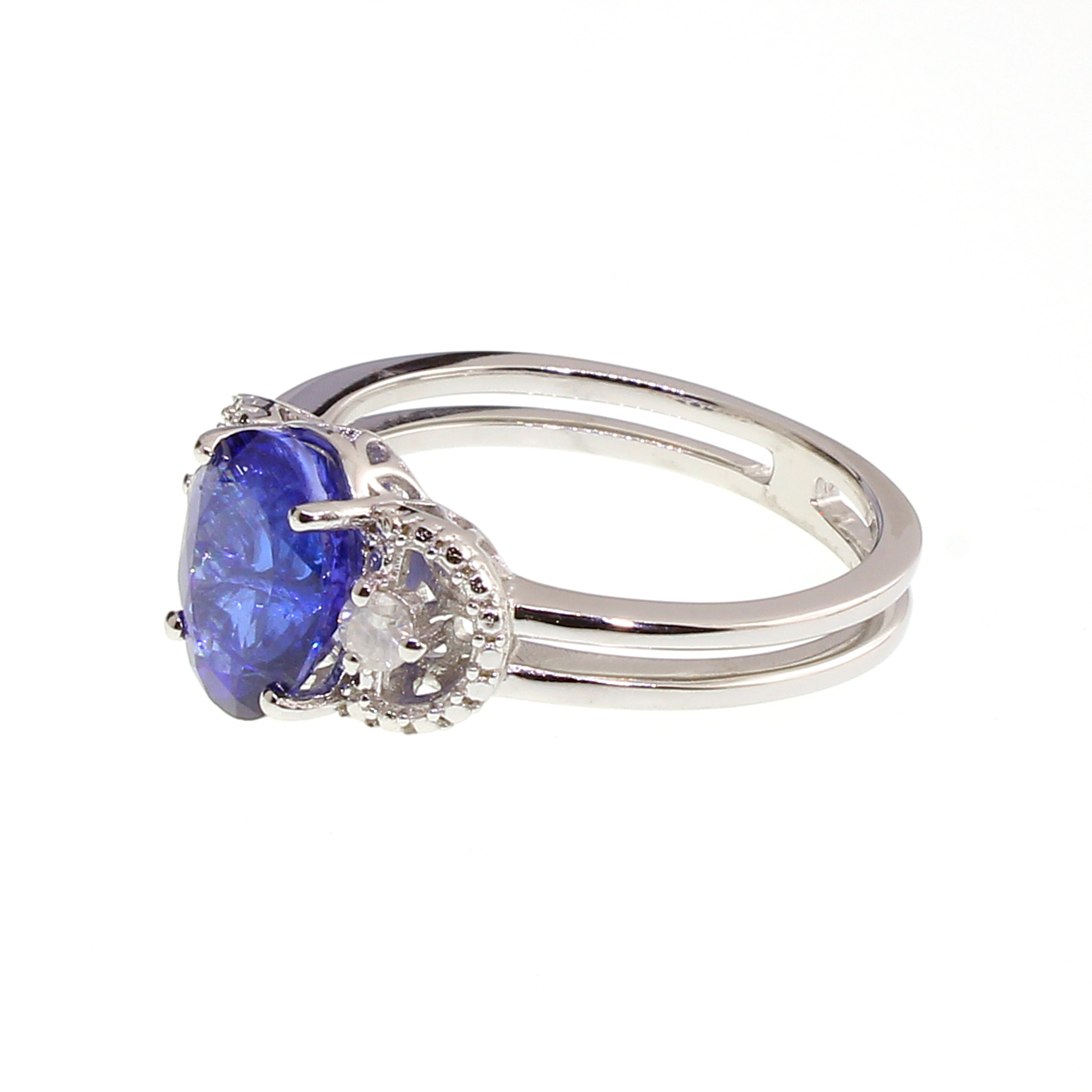 $1,689.0014K White Gold Size 7 Ring 2.96 Carat Tanzanite Trillion Cut with White Diamond 0.27ct (Vault_Q)